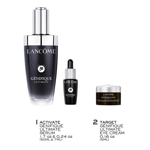 This set includes a 1.7oz and .24oz Genifique Ultimate Serum and a .16oz Genifique Eye Cream.