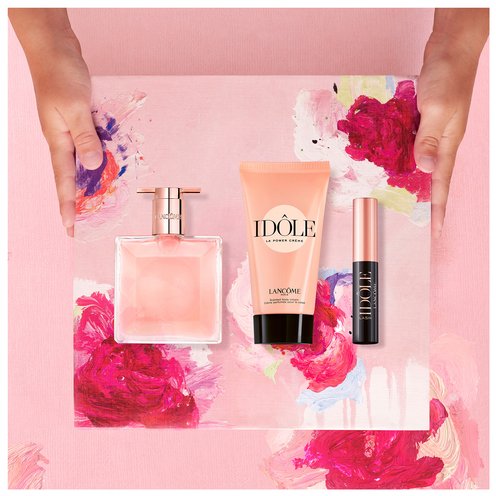 This Idole Travelers Set includes a Idole EDP .85oz, Idole Power Cream 1.7oz, and a Mini Lash Idole