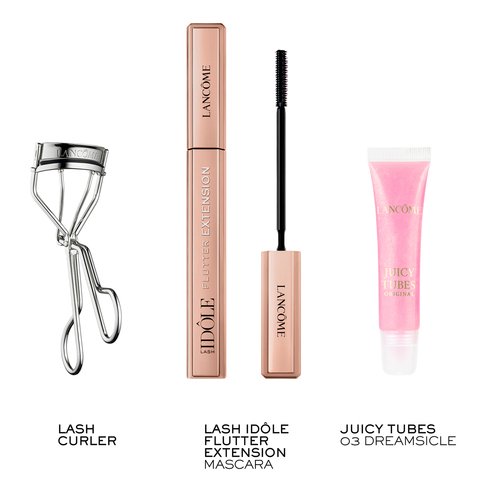 This set includes a Lash Idole Flutter, A juicy Tube, and a Lash Curler.