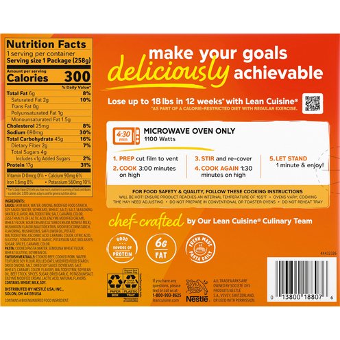 Our chefs work side-by-side with dietitians to create ridiculously tasty frozen Lean Cuisine meals. Our frozen pasta dinner features Swedish meatballs with pasta in gravy