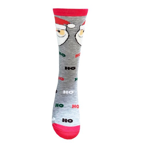 Bring the jolly vibes with these playful boucle crew socks! Featuring a cheerful Santa and bold "Ho Ho Ho" wording in an all-over print. Perfect Addition for the Holidays.