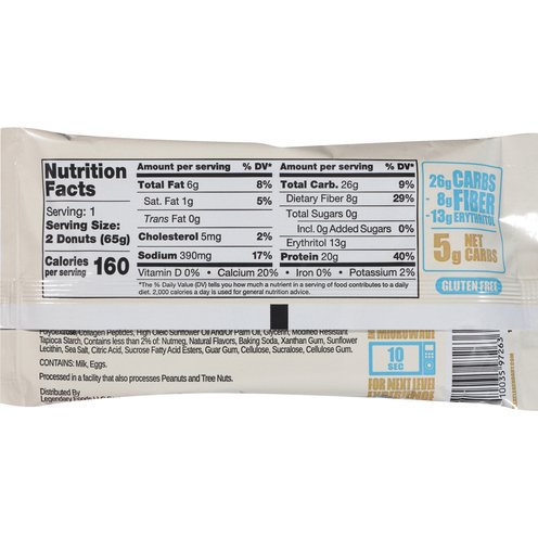 Legendary Donuts set a new standard for high-protein snacks. With 20g of protein, 0g sugar, 4–5g net carbs, and just 160 calories per serving (with 50% of calories coming from protein), they deliver unbeatable macros and unbelievable flavor.