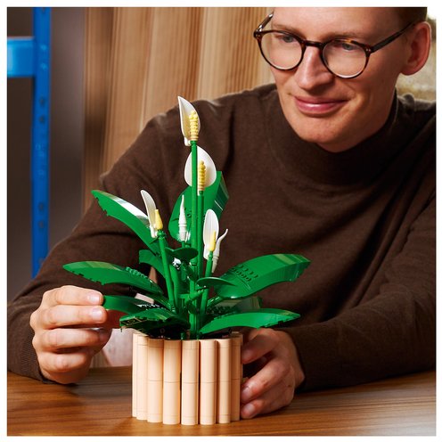 Enjoy a harmonious craft project with the LEGO® Botanicals Peace Lily (11504) building kit for adults, which lets nature lovers create a beautiful piece of lily decor. Feel your creativity unfurl as you craft the elegant LEGO Peace Lily, which includes lilies in 3 stages of a life: discover 2 furled buds, 2 partially open flowers and 2 in full bloom. Marvel at the lifelike LEGO flowers before discovering fun details, including a recolored carrot for the shape of the spadix on the half-bloomed lily and a popcorn piece at the top of the spadix of the lily in full flower. Displayed in a peach-colored plant pot, the LEGO Peace Lily becomes a gorgeous piece of flower decor that will bring a touch of tranquility to any room. A thoughtful floral gift idea for birthdays, housewarmings, Mother’s Day and Valentine’s Day, this flower building set is available in the LEGO Builder app, where budding florists can zoom, rotate and track their progress. Set contains 474 pieces.