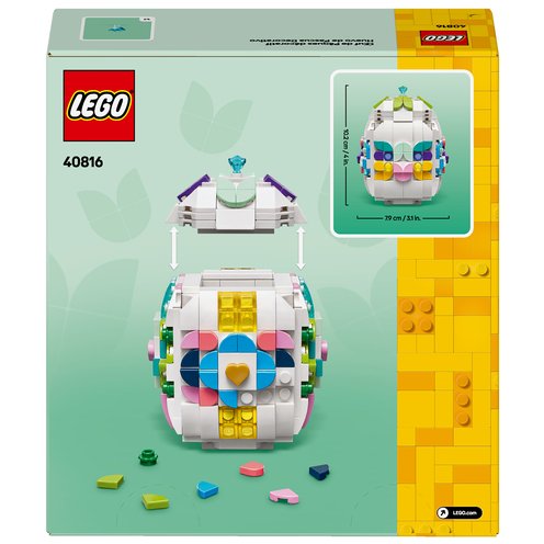 Kids aged 9 and up get creative and celebrate spring and Easter with this customizable home decor Decorative Easter Egg (40816) LEGO® gift set. Gather your friends and family to ‘paint’ eggs in a LEGO way. With this building kit, you can make your own Easter egg and decorate it with colorful LEGO elements, including a golden heart and a small gemstone element. The toy egg has a flat base for ease of display and an opening top that can be removed so the extra pieces can be stored inside. Or maybe another Easter surprise. This building kit makes a fun gift for kids and spring holiday lovers, and it’s an ideal set for family or friends to build together. Assemble the egg ornament and begin decorating. Use the instructions or unleash your own imagination and creativity to invent your own unique seasonal design. The decoration can be changed at any time to fit the holiday mood. When you’ve finished designing it, display your springtime creation in your home or office.
