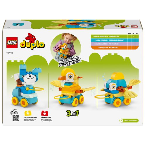 - Building toy for hours of imaginative play – Bring color and limitless creativity to the playtimes of toddlers with the LEGO® DUPLO® Town 3in1 Animals on Wheels building toy