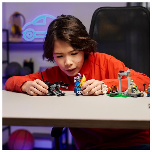 - Video game building set – The set replicates the first challenges that players encounter in the LEGO® Fortnite®Odyssey video game and features a campfire, workbench and ruins