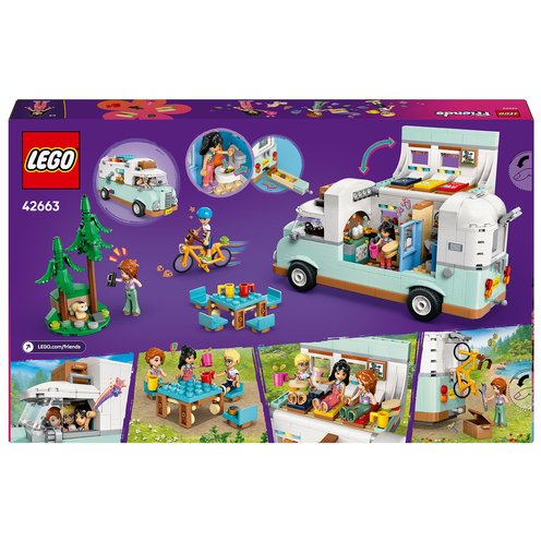 Young imaginations go wild with this kids’ role-play building set for girls and boys aged 7 and up. The LEGO® Friends Friendship Camper Van Adventure (42663) features a buildable LEGO vehicle toy, 3 minidolls and a ferret figure. This camper van playset for kids has everything young explorers need to tell their own camping stories. The friends sit in the driver’s cab as they find the perfect woodland spot. The RV opens to reveal the kitchen, with cooking equipment, and the toilet. There’s sure to be giggles all round as kids see the waste disappear when the toilet ’flushes’! A staircase leads to the sleeping area, where there’s a bed for each of the 3 minidoll characters. Other details include a bike for the characters to ride, a picnic table with chairs, an outdoor shower and camping accessories, including a compass, wrench and binoculars. Discover other cool toys for kids in the LEGO Friends universe, where there are lots more friendship stories to uncover (sets sold separately).