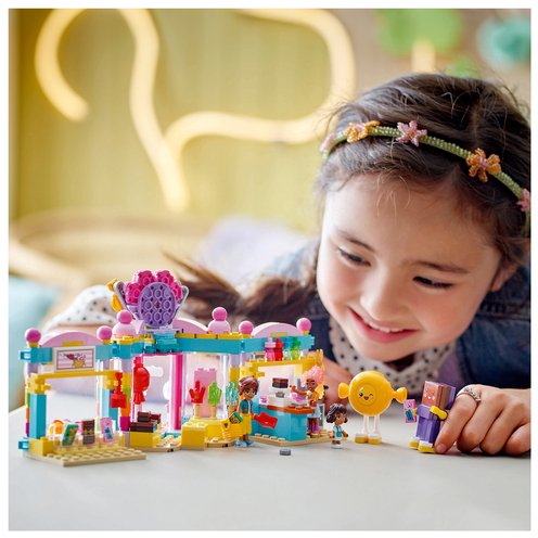 Here’s a sweet birthday gift for kids aged 6 and up who love pretend-play sets and shop toys. Girls, boys and young builders can explore the LEGO® Friends Heartlake City Candy Store (42649), which is packed with goodies and fun details. The set comes with 2 minidolls, a micro-doll, a cat figure and lots of accessories for creative play. This set is a great toy for supporting kids’ social development skills. Your young builder can act out customer interactions or create sibling stories with Leo and his younger sister, Alba. The set is packed with candy shop-themed features, like the pick ’n’ mix selection, the giant lollipop, a gumball machine and a cash register. There’s also a candy-making area with ingredients, scissors and a cooking pot. And who could resist saying hello to the store’s two mascots – a chocolate bar and a wrapped candy? Discover more fun toys in the LEGO Friends universe (sets sold separately) with diverse characters and friendship stories to discover.