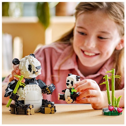 Kids aged 8 plus share in the love and fun of 3 animal families with this Wild Animals: Panda Family (31165) playset. The panda toy features an adult animal with a posable mouth, head, neck and paws, and a cute baby panda accompanied by a bamboo shoot to eat as a snack. Kids can choose to build 3 different LEGO® animal playsets with the same set of bricks: a posable panda figure with its cub next to bamboo stalks; a posable orca figure with its calf, who can be displayed together on transparent stands; or a posable penguin toy and its chick on a patch of ice and water. All 3 scenes make a great LEGO gift for kids for imaginative play and display. LEGO Creator 3in1 sets inspire kids’ creativity with a choice of 3 different models to assemble in every box! They will be excited to build, rebuild and build again. 3in1 sets offer a range that appeal to kids’ biggest passions, including superfast vehicles, amazing animals and houses. Please note that models cannot be built simultaneously.