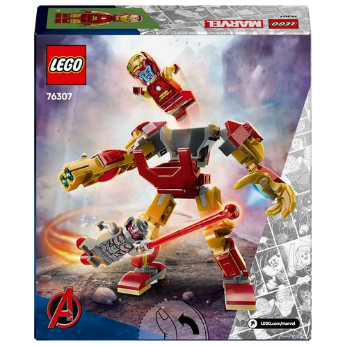 Iron Man Mech vs. Ultron (76307) is an action-packed, buildable LEGO® Marvel playset for kids aged 6 and up who enjoy Super Heroes and hands-on construction adventure toys. This LEGO Marvel mech playset includes 2 minifigures: Iron Man with a flip-open helmet and reversable head showing alternative expressions, and Ultron holding a laser beam element. The buildable mech has movable arms, legs and fingers and a stud-shooter at the end of its right arm. The torso opens to reveal a cockpit where the Iron Man minifigure can sit. For added digital fun, builders can zoom in, rotate models in 3D and track their progress using the fun, intuitive LEGO Builder app.