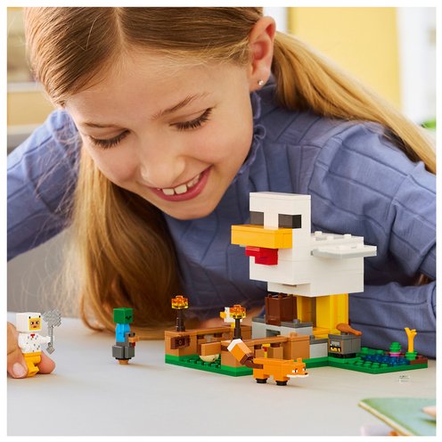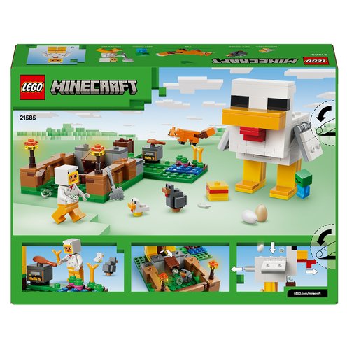 Care for chickens and grow crops with the LEGO® Minecraft® Chicken Farm (21585) gamer toy for girls and boys 7 years old and up. This kids’ gaming building set challenges players to look after a cold chicken and a baby chicken with a Chicken Fan minifigure, while dealing with a fox (who likes to eat cold chicken) and a baby zombie (who likes to ride chickens). The pretend play chicken coop is shaped like a chicken with movable wings and a pen at the front with an opening gate. The giant chicken lays eggs at the rear and dispenses seed from its mouth into a container, which tilts forwards when the chickens need food. Fun accessories include torches, hay, a smoker stove, 2 eggs, 2 lots of seeds, a chicken leg, feather and an axe. This is a great gift idea for Minecraft players, LEGO builders and fans of gaming decor sets and comes with the LEGO Builder app, which lets kids zoom, rotate in 3D and track progress with easy-to-follow digital instructions. Set contains 233 pieces.