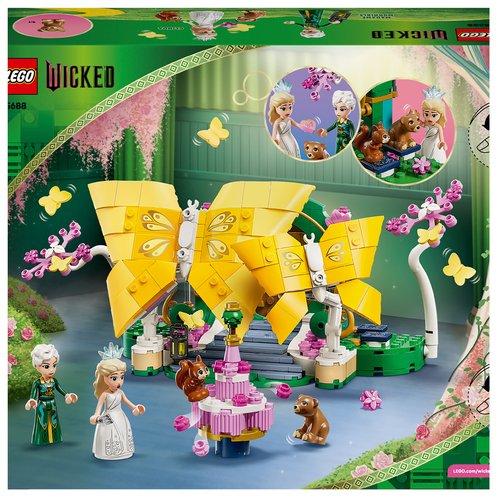 Open up a world of creative activities with LEGO® Wicked Glinda’s Wedding Day (75688) role-play toy for kids aged 8 plus. Girls, boys and fans of Wicked merchandise build this beautiful set then play out the dramatic scene from Wicked: For Good, where Glinda prepares to marry Fiyero. Kids pull apart the giant posable LEGO butterfly building toys to reveal the wedding scene. This fantasy gift packed with recognizable details from the movie, including the wedding cake, is a heart-shaped invitation and Glinda’s bouquet from Fiyero. For authentic role play Glinda wears the gown and tiara from the movie, and has a changeable face as her day flips from delight to disaster when the included animal figures rampage through the scene. When the play is over, kids close the Wicked-themed gift by drawing the butterflies together and display this eye-catching set in their room. This building toy can be used with other LEGO Wicked sets so the movie adventures never end. Set contains 476 pieces.