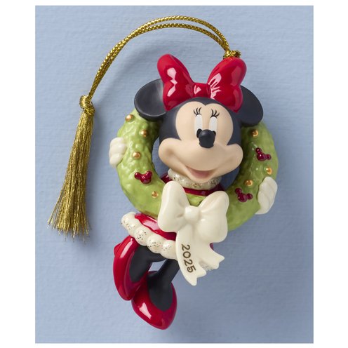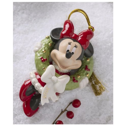 Celebrate Disney, the stories, and the memories that last a lifetime. In this annual ornament, Minnie Mouse returns for some whimsical winter fun-in fact she's got the first decoration for your tree ready too, a festive Christmas wreath.