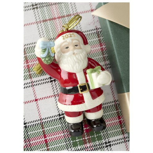 Santa spreads holiday cheer with a playful sprig of mistletoe in this 2025 annual ornament. His jolly expression and festive design make it a wonderful way to mark the year. A perfect addition for collectors and anyone who loves a classic Santa with a playful twist.
