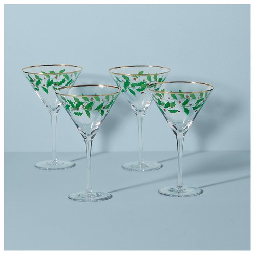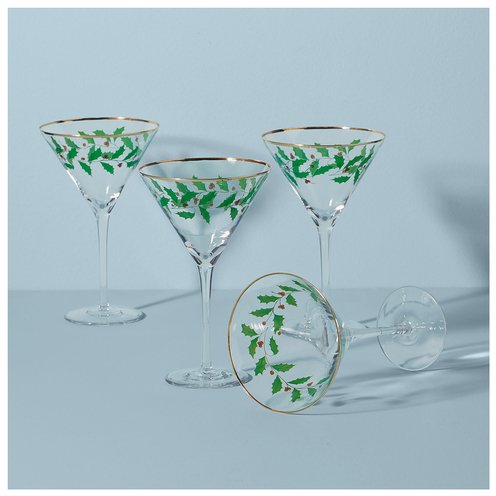 Cheers to Christmas spirits! Celebrate the holiday season with this set of four stunning martini glasses featuring a decal of our iconic Holiday holly and berry pattern. It's the perfect gift for the host in the family!