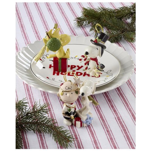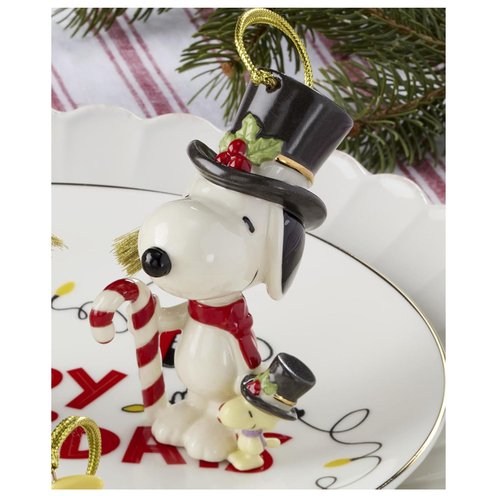 Snoopy and Woodstock spread holiday cheer with this playful ornament featuring the duo sharing a candy cane. With their signature charm and festive spirit, they bring a smile to any tree. A delightful addition for Peanuts fans and those who love a touch of whimsy this season.