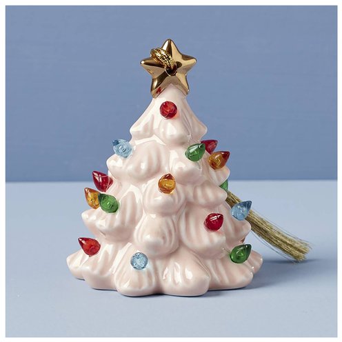 Everyone's favorite centerpiece is now an ornament! This Treasured Traditions piece is pure holiday nostalgia that you can pass down from generation to generation. Crafted of stunning pink ceramic, the carved tree features hand-painted detail and is topped with a star for a luminous finish. This tree comes with multi-colored bulbs throughout for a cheery glow that will steal the spotlight on your tree.