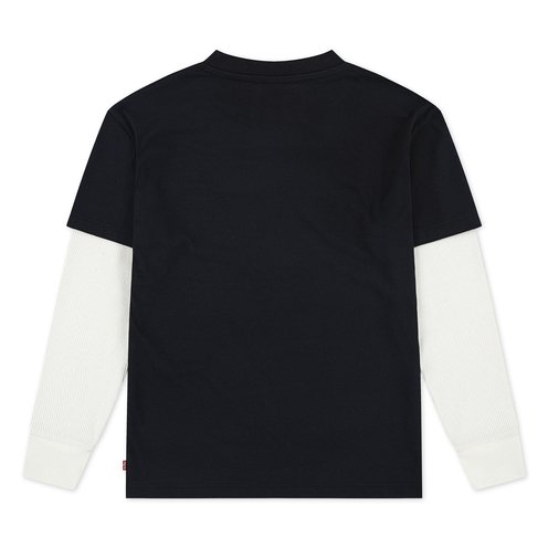 This Levi's® tee layers a long-sleeve base under a short-sleeve graphic top for a cool 2-in-1 look. Soft jersey fabric keeps it comfortable all day. A standout style with everyday versatility.