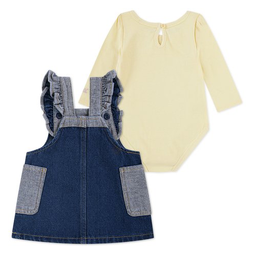 A denim skirtall with ruffle straps adds charm, paired with a soft coordinating bodysuit. The set delivers easy layering and everyday comfort. A cute, classic look in true Levi’s® denim style.