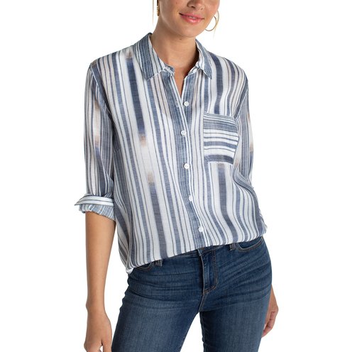 A fresh take on a classic. This striped button-front shirt is designed with soft structure and an easy drape, making it as effortless tucked in as it is worn loose.
