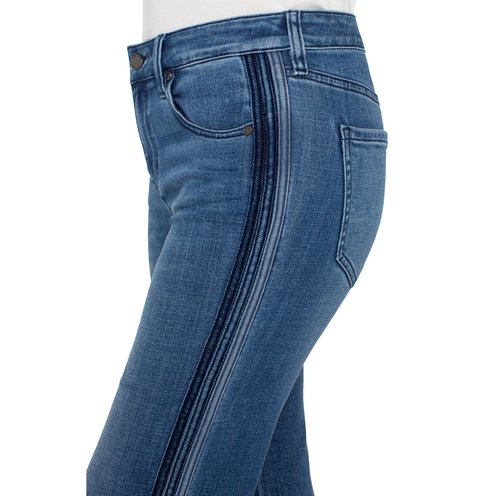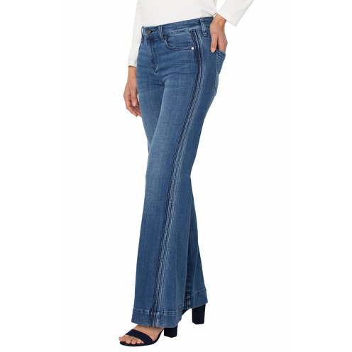 The Hannah Flare gets a fresh update with tonal trim running down the leg-subtle detailing that elongates the silhouette and sets this denim apart from the rest. Let the trim detail shine, pair with a tucked-in blouse and heeled boot for a lengthened look, or keep it casual with sneakers and a simple knit.