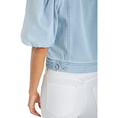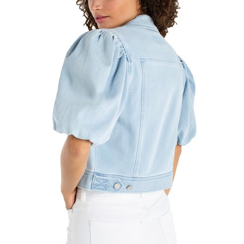 A cropped trucker jacket designed with soft puff sleeves and a structured collar, this piece balances volume and shape with ease. The cropped length adds a modern edge, making it the perfect layer over dresses, knits, or high-rise denim.