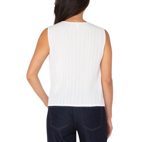 Clean lines meet thoughtful detail. This sleeveless knit top is designed with a classic crew neckline and soft pleat detailing that adds subtle texture and shape. Polished enough to wear solo, yet effortlessly layers under your favorite jackets and blazers.