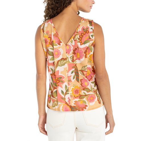 A floral printed woven blouse designed for effortless styling. This top from Liverpool Los Angeles features a V-neckline, pintucking, and button-front details. Easy to dress up or pair with denim for everyday polish.
