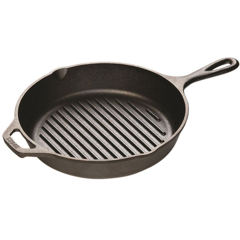 Put restaurant stripes on your grilled favorites like a pro. The Lodge round grill pan's ribbed bottom lets you keep food from simmering in fatty drippings for lower fat cooking and is seasoned and ready to use.