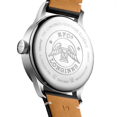 The unique Longines Heritage Classic automatic watch features a round 38mm stainless steel case and water resistance up to 30 meters (100 feet). This watch is enhanced with arabic numerals and sapphire crystal.