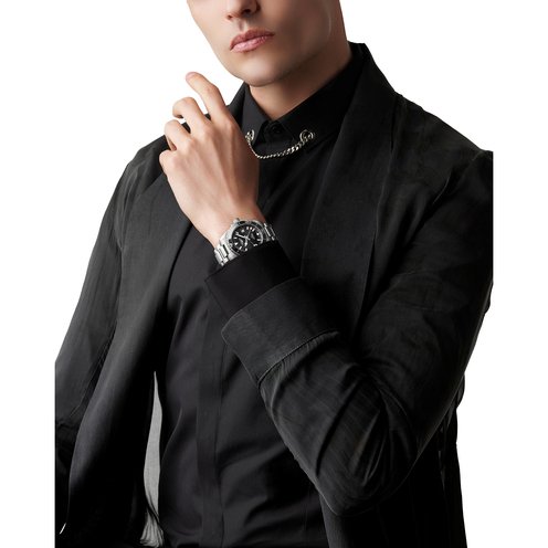 The HYDROCONQUEST watch features a round 41.00mm stainless steel with ceramic bezel case, with a water resistance of 300 meters (1000 feet). This watch is enhanced with a sunray black dial. The functionality of this timepiece is hours, minutes, seconds and date. 24 hours hand with time zone mechanism. It comes with a stainless steel bracelet with double security folding clasp with micro adjustment system.