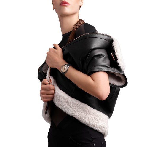 THE LONGINES MASTER COLLECTION automatic watch features a round 38.50mm stainless steel case and water resistance up to 30 meters (100 feet). This watch is enhanced with a salmon dial. The functionality of this timepiece includes hours, minutes, and small seconds at 6 o'clock. It comes with a grey alligator strap with triple safety folding clasp and push-piece opening mechanism.