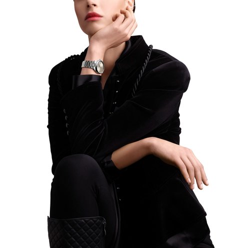 THE LONGINES MASTER COLLECTION automatic watch features a round 34.00mm stainless steel case and water resistance up to 30 meters (100 feet). This watch is enhanced with a white mother of pearl dial set with 12 Top Wesselton VS-SI diamonds, for a total of 0.055 carats. The functionality of this timepiece includes hours, minutes, seconds, and date. It comes with a stainless steel bracelet with triple safety folding clasp and push-piece opening mechanism.
