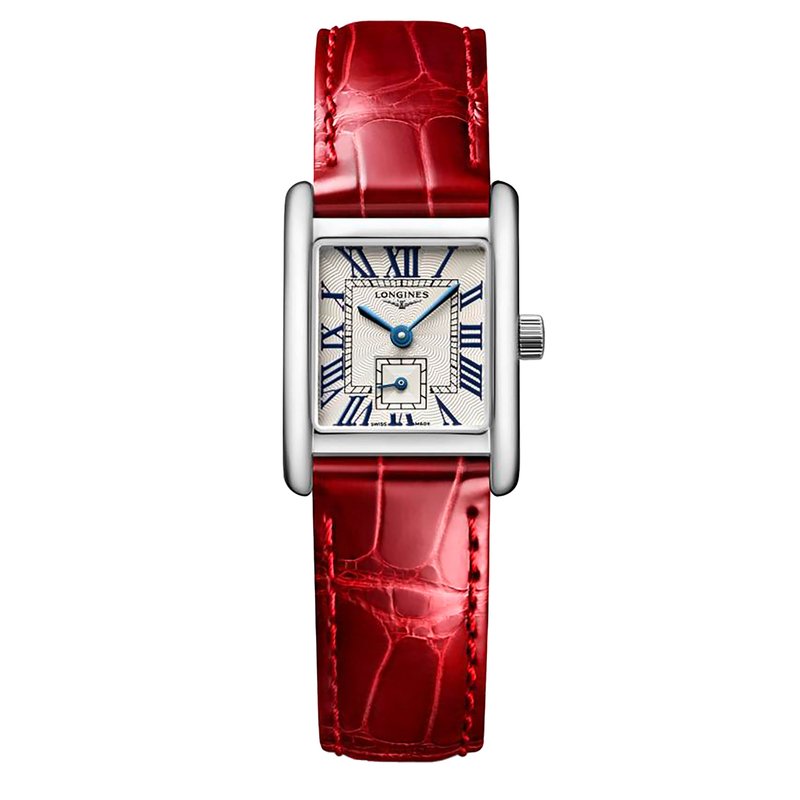 This MINI DOLCEVITA watch features a rectangular 29.00 x 21.50mm stainless steel case and water resistance up to 30 meters (100 feet). This watch is enhanced with a silver "flinqué" dial. The functionality of this timepiece includes hours, minutes, and small seconds at 6 o'clock. It comes with an alligator strap with a buckle.