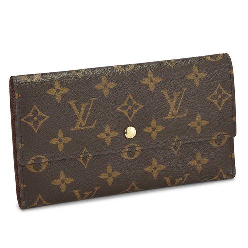 PREVIOUSLY OWNED VINTAGE LUXURY HANDBAGS -- ALL SALES FINAL, NO RETURNS Not valid for Keep It New warranty plans, Special Orders, or Price Matching Excluded from additional discounts including Scratch Off cards. Classic pre-owned Louis Vuitton International wallet rendered in the house's signature Monogram canvas, featuring a brown Taiga leather interior and accented with gold-tone brass hardware.