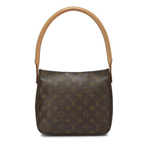 PREVIOUSLY OWNED VINTAGE LUXURY HANDBAGS -- ALL SALES FINAL, NO RETURNS Not valid for Keep It New warranty plans, Special Orders, or Price Matching Excluded from additional discounts including Scratch Off cards. Louis Vuitton Looping bag, named after its structured "loop" shoulder strap, crafted in the house's iconic Monogram coated canvas, accented with natural Vachetta leather and finished with gold-tone brass hardware.