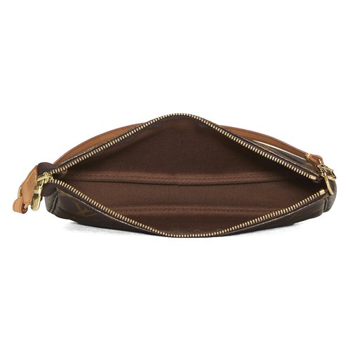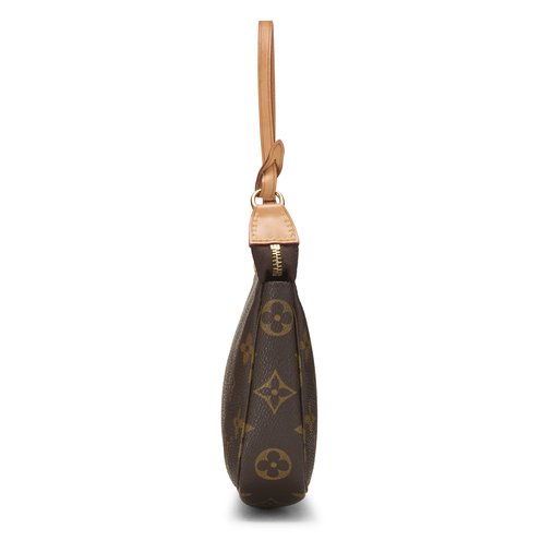 PREVIOUSLY OWNED VINTAGE LUXURY HANDBAGS -- ALL SALES FINAL, NO RETURNS Not valid for Keep It New warranty plans, Special Orders, or Price Matching Excluded from additional discounts including Scratch Off cards. The classic and compact Louis Vuitton Pochette Accessoires is a timeless and recognizable design that features a removable Vachetta leather strap that also attaches to larger bags for use as an interior pouch. This bag is rendered in the house's signature Monogram coated canvas and accented with gold-tone brass hardware.