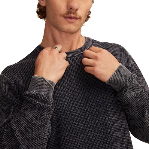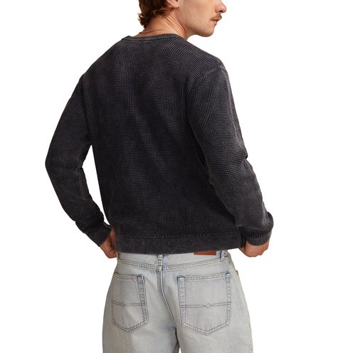 Don't let your cool-weather wardrobe go without Lucky Brand's Waffle Crewneck Sweater. Made of lightweight cotton-linen fabric that naturally helps keep you feeling cool and comfortable, this waffle-knit sweater looks good worn solo or layered under denim or leather jackets, cardigans and more.