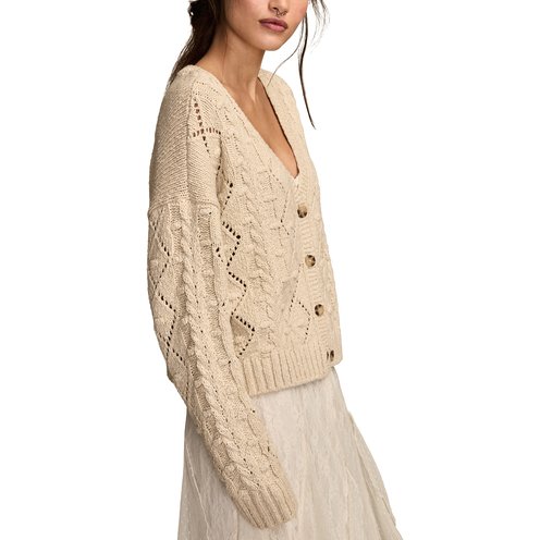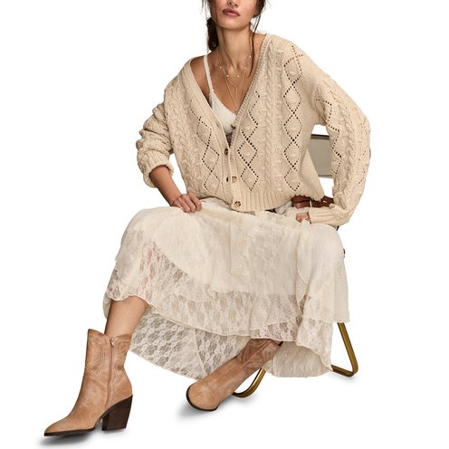 Add the Cropped Cable Cardigan from Lucky Brand to your sweater collection. Cropped to hit at the waist, this cardigan is finished with a button front, ribbed details and a classic cable-knit design.