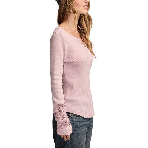 Update your casual style with the Cutwork Notch Neck Top from Lucky Brand. Made of soft waffle-knit fabric, this long sleeve top has a notch neckline and so pretty floral cutwork design at the sleeves for added interest.