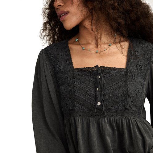 Style an endless amount of day-to-night looks with the Embroidered Yoke Square Neck Top from Lucky Brand. Made from soft, stretchy cotton-modal fabric, this long sleeve top has a face-flattering square neckline, embroidered details at the yoke and a flared hem.