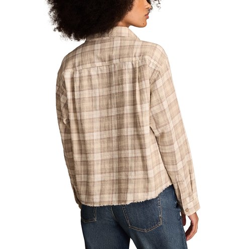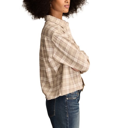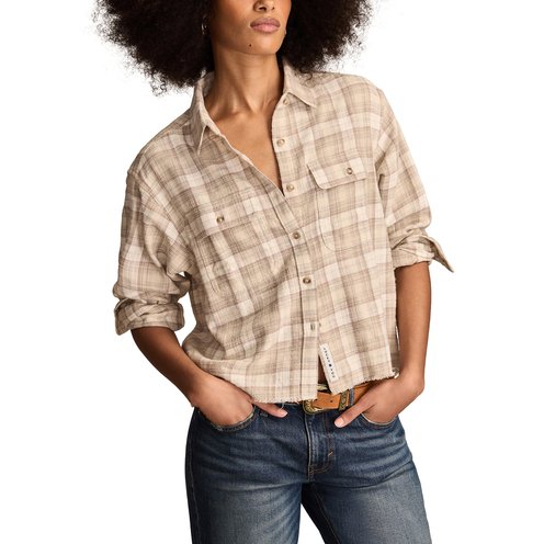 Perfect for the cool weather season, the Raw Edge Flannel Cropped Button Down Shirt from Lucky Brand is a must-have in your closet. Made of cotton, this plaid shirt is cut for a cropped fit and has double flap chest pockets and a raw edge frayed hem for added interest.