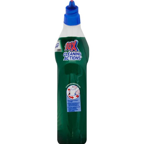 Toilet Bowl Cleaner, Bleach. 10x cleaning actions (On Limescale, Organic Soil, Rust Stains Urine Stains, Destroys Stains Under Rim, Below Wale (Cleans, Brightens, Clings to the Bowl, Whitens). Kills 99.9 % of viruses & bacteria (Kills Salmonella enterica, Staphylococcus aureus, Enterococcus faecalis, Pseudomonas aeruginosa, Rhinovirus Type 39 and Rotavirus WA). Thick liquid formula sticks to the bowl for better cleaning. Whitens and brightens toilet bowl. Cleans as it disinfects. This bottle is made of 25% post-consumer recycled plastic.