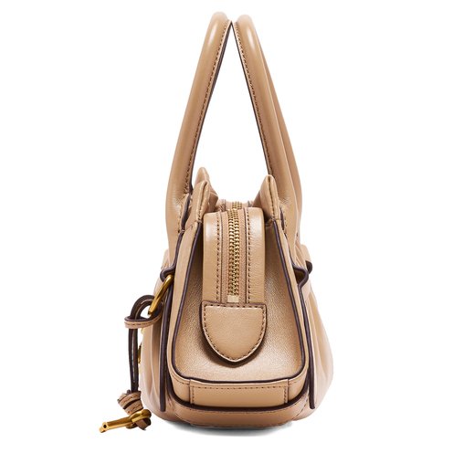 The Cristina Small Satchel is a modern revival of a beloved �Marc by Marc� archive classic. Like its inspiration, it features butter-soft Nappa leather, signature scrunch-detailing and heritage-inspired hardware. Light in feel yet structured in form, its compact silhouette brings a sense of relaxed refinement to any evening look. An archival key charm nods to its roots, while an external D-ring offers space for personalized accents. For a crossbody look, use the removable, adjustable leather strap for effortless, hands-free style.
