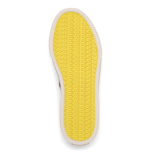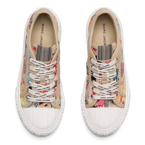 Our timeless canvas sneaker featuring a punk-inspired, tattoo scribble print. These low-top sneakers and are complete with our signature yellow sole and our signature namesake branding on the rubber outsole.
