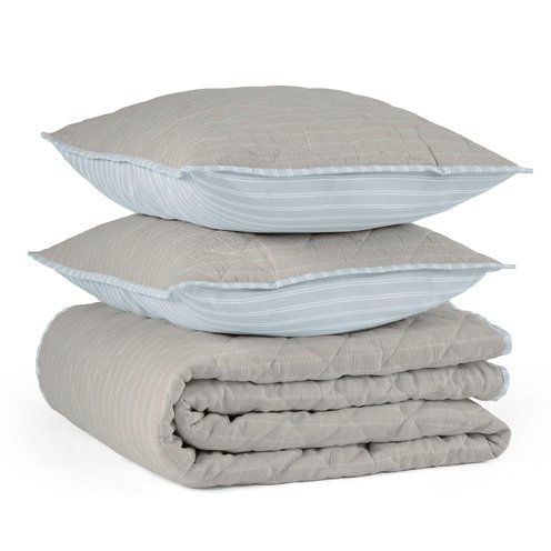 Bring the calm and charm of the coast to your bedroom with the Martex Seaview Clyde Quilt Set. Inspired by breezy seaside escapes, this set captures effortless coastal style with its timeless textures and laid-back sophistication. Expertly crafted with a yarn-dyed herringbone matelassé front and a printed stripe reverse, the Clyde Quilt offers beautiful versatility simply flip it for a fresh look that echoes relaxed coastal living. The bound edges add a refined finishing touch, making it as polished as it is inviting. Soft, breathable, and perfect for layering, this quilt set transforms your space into a tranquil retreat where comfort meets easygoing elegance.