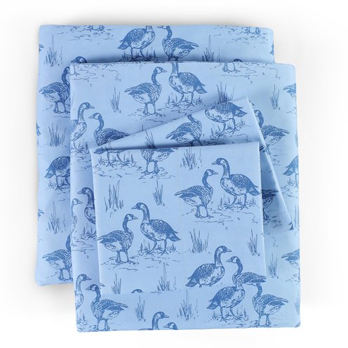 Let your dreams take flight with the Martex Seaview Geese Sheet Set, where the charm of coastal living meets timeless elegance. Inspired by tranquil mornings along the shoreline, this sheet set brings a touch of breezy sophistication to your bedroom sanctuary. Beautifully crafted from 100% polyester, these sheets feature a delicate geese toile print that captures the peaceful rhythm of nature by the sea. Soft to the touch and effortlessly smooth, the fabric offers lightweight comfort that's perfect for year-round relaxation. With its artful design and easy-care construction, the Seaview Geese Sheet Set adds a whisper of coastal grace to your home inviting you to unwind and drift away in seaside serenity.