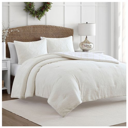 ADD WINTRY ALLURE to the bed with the Snow Fur 3 Piece Comforter Set from Martha Stewart. The reversible comforter and shams feature ultra soft ivory faux rabbit fur on the front and a windowpane plaid design in ivory and beige on the back, for two stylish looks in one.