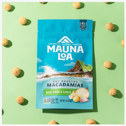 Savory garlic meets sweet Maui onion to create these perfectly seasoned Macadamia nuts. A tasty snack to power your afternoon.