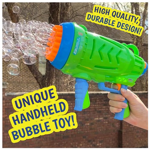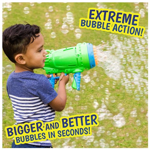 Have a bubble blast with the Bubble Barrage by Maxx Bubbles! This lightweight bubble blaster measures over 10 inches long and blows tons of bubbles when pressing the trigger. Simply pour the included bubble solution into the tray, dip the machine into the solution, and pull the trigger for a burst of extreme bubbles! With a vibrant and innovative design, this automatic bubble machine generates thousands of bubbles for endless backyard play. Perfect for kids and adults who love blasting bubbles at birthday parties, family events, playtime at the park, or just everyday outdoor fun. The Maxx Bubbles Bubble Barrage is the perfect accessory for easy, squeeze-y bubbles!